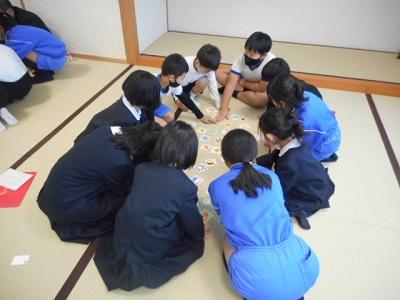 1年生と5年生はかるたをして楽しみました。