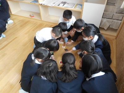 1年生も5年生からかるたをとることができたら大喜びで、ものすごい盛り上がりでした。