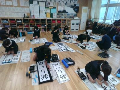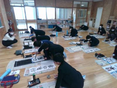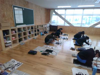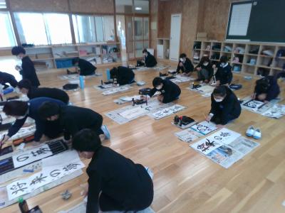 5・6年生は書き初めの練習をしました。字のポイントや筆使いなど