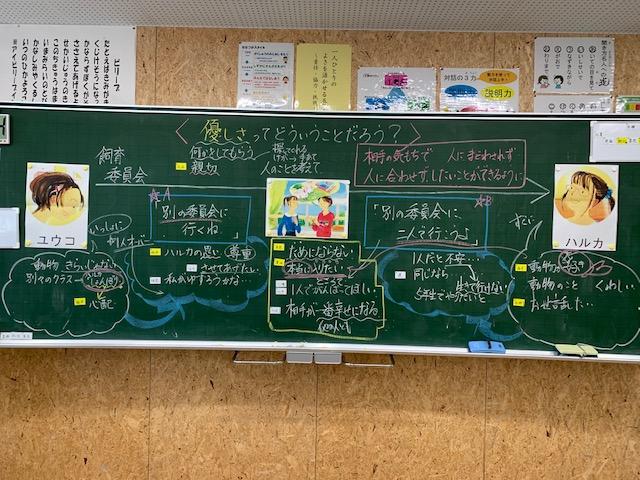 道徳で「優しさ」について考える機会がありました。学習する前は、「何かをしてもらったとき」に優しさを感じるという考えの子が多く見られました。その後、「優しいユウちゃん」を読んで、友だちを心配することだけではなく、友だちの将来を考えて行動したり判断したりすることが「優しさ」になることにも気づくことができました。