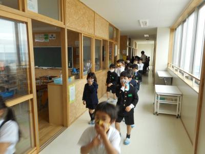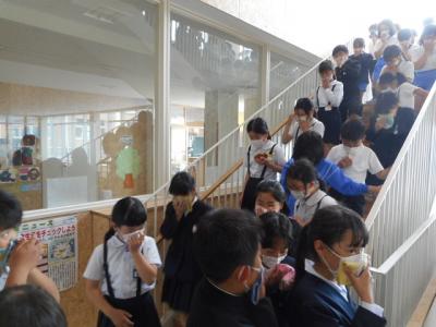 2限目に理科室出火を想定して避難訓練を行いました。