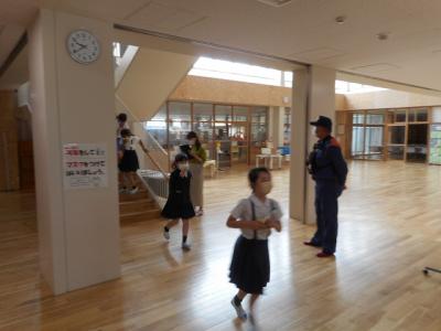 真剣な顔で運動場まで避難することができました。