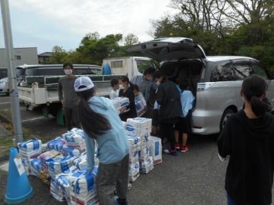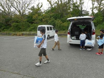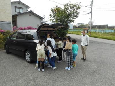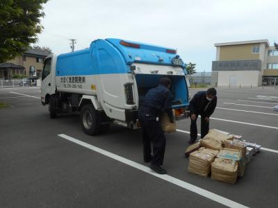 車に積み込んであったアルミ缶や新聞紙などを、子どもたちは素早く