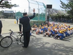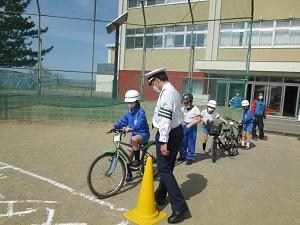 4年生が交通安全教室を行いました。自転車の安全な乗り方について津幡警察署の方からお話を聞いたり,DVDを見たりして学びました。また,実際にどのように乗れば良いか自転車のコースを走りながら確認しました。まだ自転車に不慣れな子もいましたが、どの子も真剣に参加していました。自転車の事故は4年生が一番多いそうなので、これから安全に気をつけて自転車に乗ってほしいです。