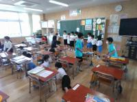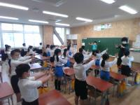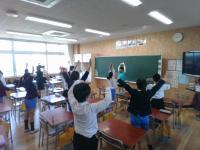 2022年4月20日 09時17分今日からげんきっず体操が始まりました。体力向上を目指して、毎週水曜日の朝学習の時間に、げんきっず委員会がお手本となって、全校で取り組んでいます。げんきっず体操が終わった後は各クラスでそれぞれ体力アップにつながる運動をしています。腕ずもうや8の字跳び、進化ジャンケンなど、どのクラスも工夫して楽しく体を動かしていました。