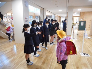 寒い中、先週児童玄関に立ってあいさつ運動をしました。