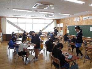 6年生が中心となって、イラストのかき方についてアドバイスしていました。