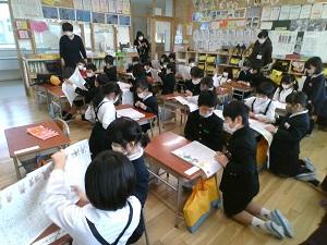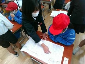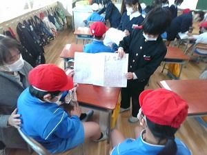 2年生が国語で作った物語を1年生に読み聞かせしました。1年生が面白い,びっくりしたと言ってくれるように,どんな出来事が起こるといいか良く考えて作った作品だったので,自信をもって読み聞かせをしていました。
