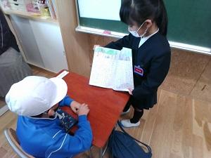 1年生は,物語を読んで「面白かった」と感じたようです。2年生は1年生に上手く読み聞かせが出来て満足していました。