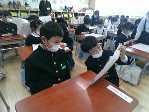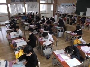 落ち着いた雰囲気の中で,集中して書き上げることができました。どの子も2学期学習したことや冬休みに練習したことを生かして取り組んでいました。惜しくも入選しなかった子の中にも,見ごたえのある素晴らしい作品がたくさんありました。