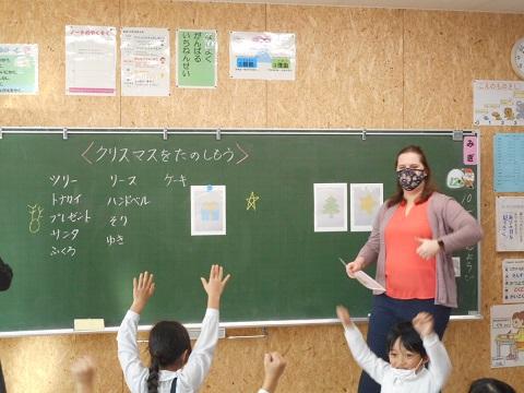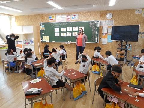 自己紹介から始まり、クリスマスにちなんだ言葉の発音練習、ミッシングゲーム、