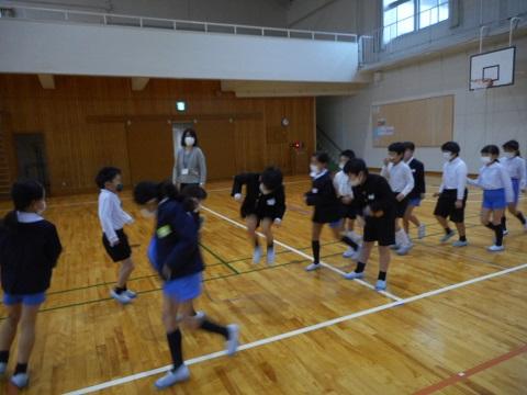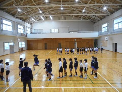 今日は2年生が体育館で練習する日でした。クラスで8の字跳びをしたり、