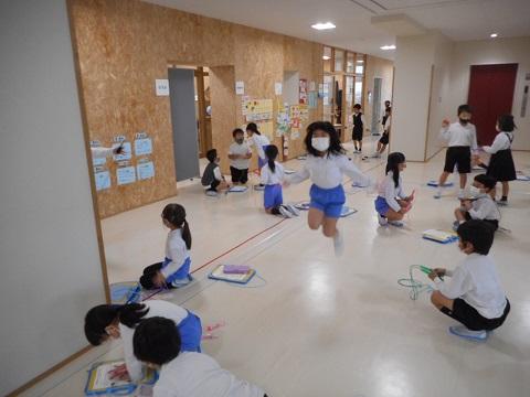 クラスで長なわの練習をしたり、個人でいろいろな技や回数に挑戦したりしていました。