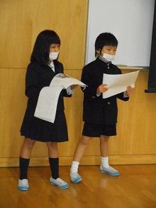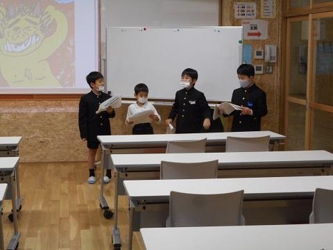 明日「ももたろう」の音読発表をする予定です。今日は本番さながらの最後の練習でした。