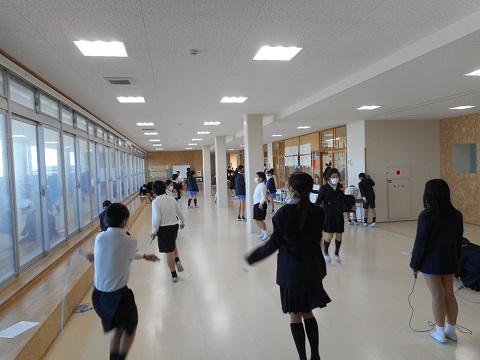 月曜日は3年生が体育館で、他の学年は校舎内の指定場所で行いました。