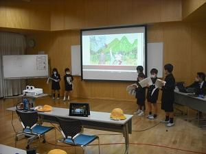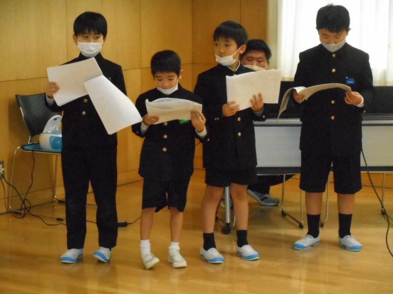 2021年12月15日 15時00分河北台中校区学習発表会がありました。本校の児童6名と外日角小学校の児童7名、河北台中学校の生徒3名と合同で今年1年で学習したことの成果を発表し合いました。のぞみ学級とひかり学級の児童は「ももたろう」の音読を大きな声で、それぞれの役になりきり、気持ちを込めて発表することができました。また、他の学校の発表を見て、互いの良さやがんばっていることが伝わり、とても有意義な会になりました。