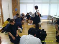 異物除去講習会では,昨年度の福岡県の事案の経緯を確認し,学校現場ではどのように動けばよいのかをシュミレーションした後,養護教諭の指導のもと,「背部叩打法」と「腹部突き上げ法」の2種の方法を実際に試してみました。