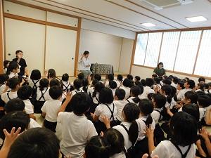 たくさんの児童が、手遊びやお話の世界に浸っていました。