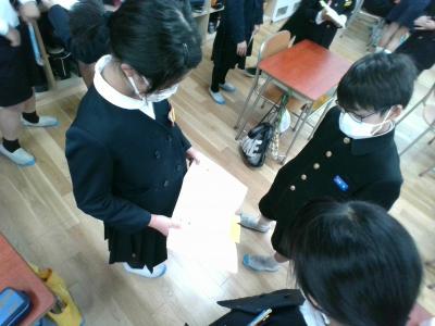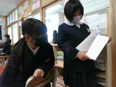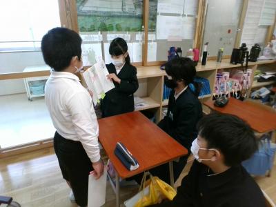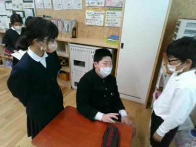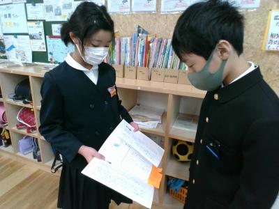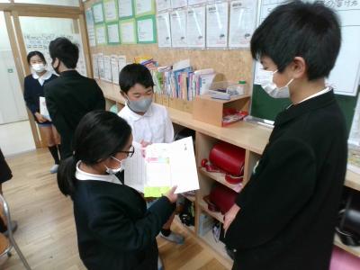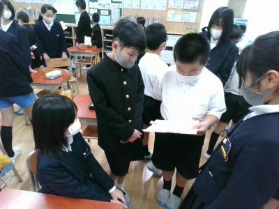4年生が国語で学習したことを5年生に見せに来てくれました。