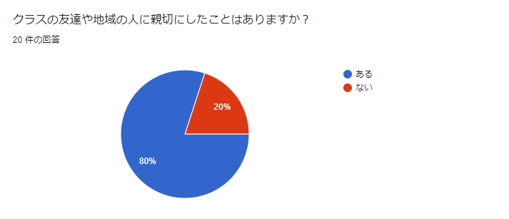 自分で親切にしたことがありますか?という質問に対しては、「ない」と回答した子が少し増えました。