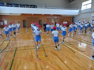 石川県「いしかわっ子体力向上アクションプラン」の取組として、石川県立大学宮口教授に来校していただき、4年生に対して、ラダートレーニングと縄跳び指導をしていただきました。