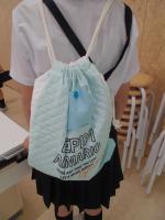 家庭科の時間にナップサックを作りました。ミシンの直線縫いやひもの通し方を覚えてできるようになったから次に生かしたいです。上手にポケットを付けていた児童もいました。感心しました。