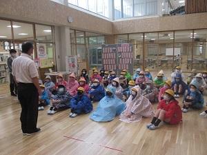 あいにくの天気により、朝からどことなく元気がない子どもたち。せっかくの遠足も中止となってしまいました。