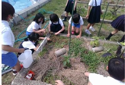 生活科で育てている野菜の苗のお世話をしました。