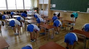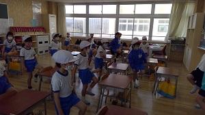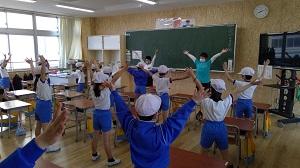 今日は水曜でしたので、今年度はじめてのげんきっず体操を行いました。げんきっず体操の後の5分間、げんきっず委員会の児童が、体を鍛える運動を提案し、各クラスで楽しく運動しました。