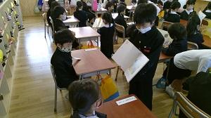 2021年4月22日 08時50分朝読書の時間に2年生が1年生に読み聞かせをしました。