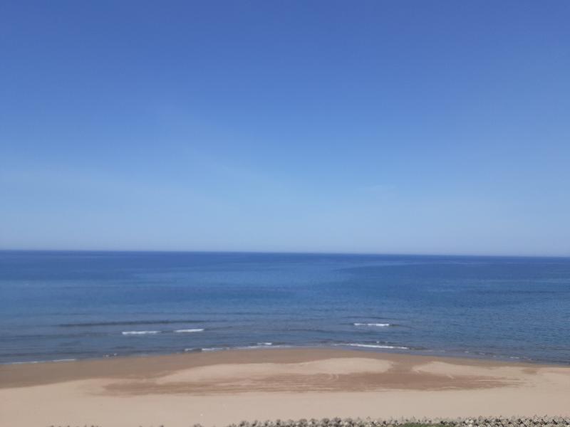今日の学校前の海は、おだやか~な、まるで「南の島か」と思うような海でした。