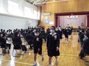 在校生は5年生のみ参加しましたが、学校の代表として素晴らしい態度で式にのぞんでいました。卒業生は、お別れする校舎や先生たちとの日々を思い出し、涙していました。卒業生のみなさん、中学校でもがんばってください。
