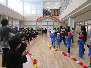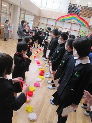 6年生を送る会が行われました。今年度は、ビデオ撮影を事前に行い、それを6年生に観賞してもらうという形式で行いましたが、6年生の中には、感動で涙をながす児童もいました。最後に全校児童でお見送りすることができました。