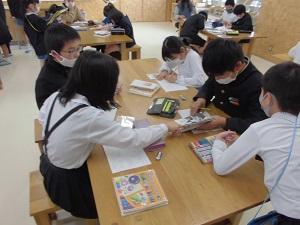 昨日お昼休みに、図書室・多目的ホールにて「家族に感謝のしおり作りの会」を行いました。