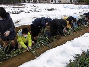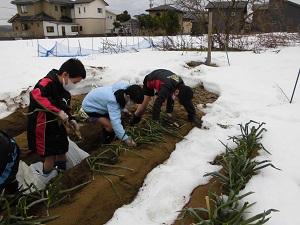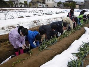 収穫の仕方を教えてもらうと、すぐにコツをつかみ、次々にネギを抜いていました。