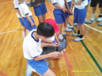 6年生から自分の演技の技の動画を見せてもらったり,前回りや逆上がりの補助をしてもらったりして,