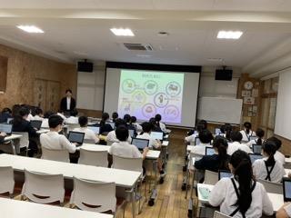 税理士の伊藤先生から税金についての話を聞き、自分たちの身近なことと関連づけながら税金について知りました。税金がどんなところで使われているのか、教育関連の税金は年間で一人当たりいくらくらいなのか、税金の種類についてなど、クイズをしながら教えていただきました。また「公平」に税金を集めるためにはどうすればよいのか、「公平」に税金を使うためにはどんなことに使えばいいのかなどについて考えました。今後の生活の中でこれからも考え続けられるといいですね。