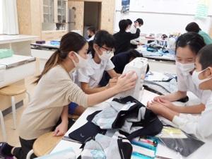 5年生の家庭科の学習でミシンの授業を行うにあたり、保護者の方にボランティアに来ていただきました。