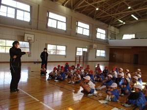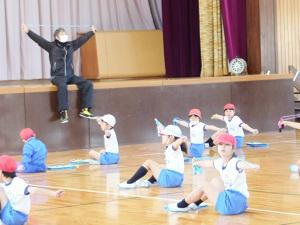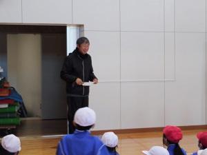 12月9日(水)2年生がなわとび講習会を行いました。クラブパレットの西田先生がなわとびの跳び方のコツを教えてくれました。初めは、なわとびを使った体ほぐしの運動からスタートし、前とび、後ろとび、と練習していきました。同じ前とびでも、リズムや足のステップを変えて跳ぶと、いつも同じ姿勢で跳んでいた時と違った運動になりました。