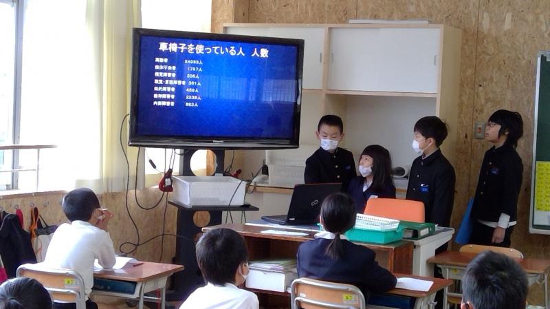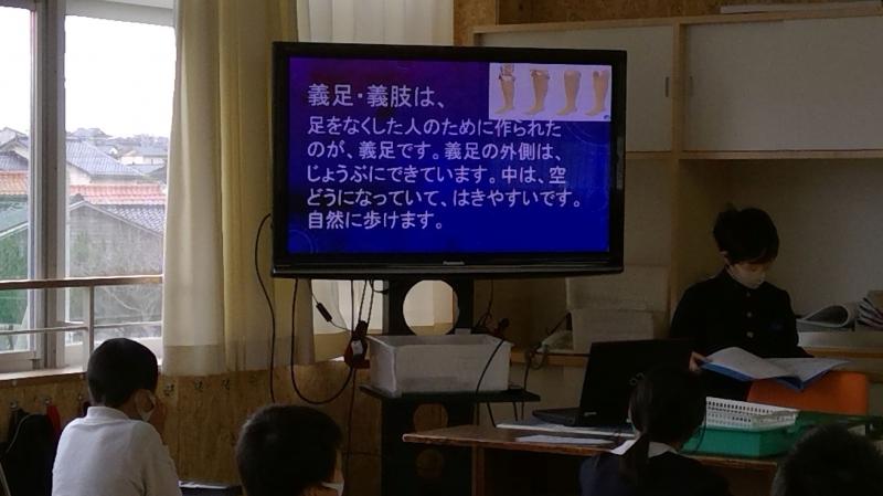 4年生が障害について調べたり分かったり考えたりしたことを3年生に発表してくれました。
