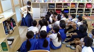 今日も朝の読み聞かせを行いました。別のクラスの先生に読み聞かせをしてもらうと、新鮮なようで、児童は集中して読み聞かせを楽しんでいました。