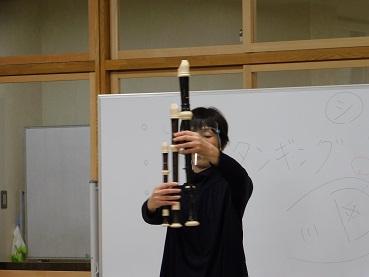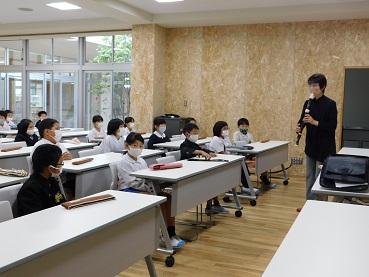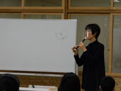 音楽で3年生からリコーダーを演奏するので、今日はリコーダー奏者の方に来ていただいて講習会をしました。