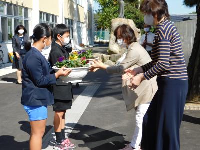 今日学校に「人権の花」が届きました。環境委員会の児童が