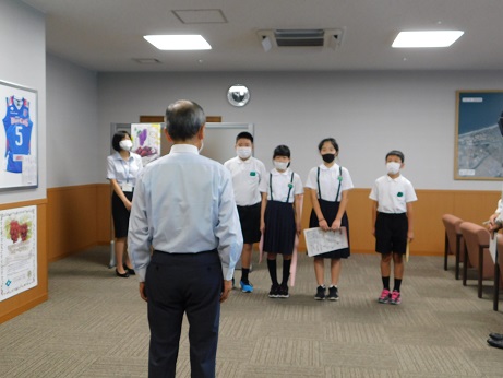 6年生の代表5名がかほく市の油野市長さんを訪ね、