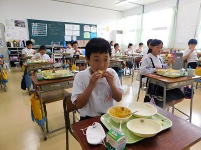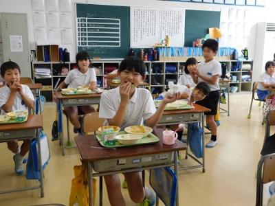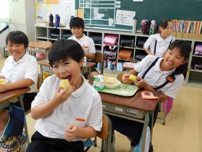 スイカは,4.5.6年生が今日の給食で切り分けていただきました。