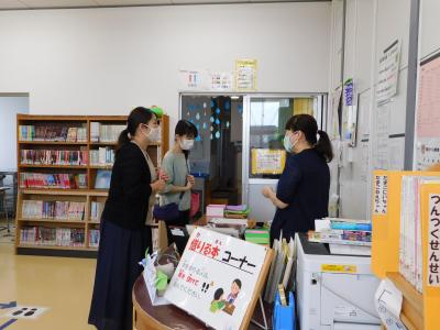 いつもならば、図書室内で掲示物を制作していただくのですが、しばらくはなるべく接触を避けるために、お子さんを通じて作品のやり取りをすることになります。