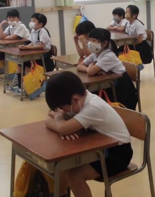 今日の朝学習は、全校一斉各クラスで、昨日の教職員研修の成果を発揮して、熱中症について子ども達に指導しました。