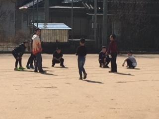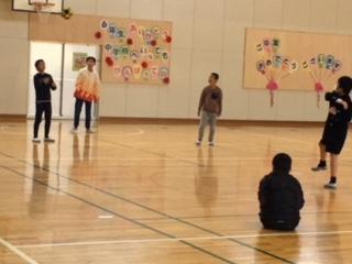 今日は、温かくとてもよいお天気だったので、男の子達は運動場で、女の子達は体育館に分かれて、元気に遊んでいました。