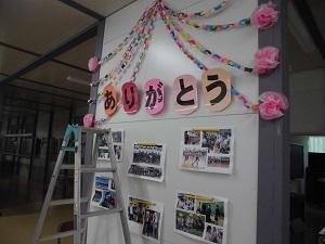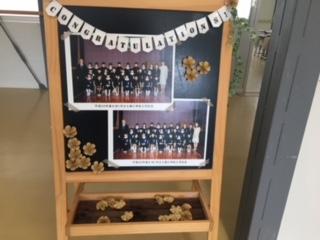 玄関受付には、保護者作成のウエルカム・ボードも届きました。入学時の懐かしい写真です。卒業生も、きっと喜ぶことでしょう。