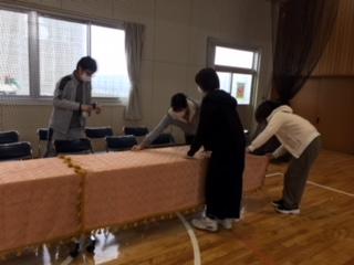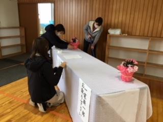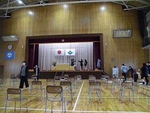 明日の卒業式に向けて,職員で式場等の準備を行いました。思い出に残る特別な式にするため,一生懸命心を込めて準備しました。